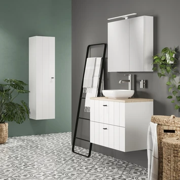 De Tiger Spiegelverlichting Ancis Wit 60 cm is een strakke designlamp die je badkamer voorziet van luxueus licht. De Ledlamp met een lichtopbrengst van 780 Lumen voorziet je van het nodige licht bij het scheren of aanbrengen en verwijderen van make-up. De lichtkleur van 4000 Kelvin, die overeenkomt met daglicht, wordt bovendien aangeraden door visagisten. Met de energiezuinige LEDlamp die slechts een verbruik heeft van 13,2 Watt en een levensduur van 20.000 branduren is deze spiegellamp een zeer economische aankoop. De lamp is vocht- en corrosie bestendig en IP44 bestendig tegen spattend water boven de wastafel. Door de geïntegreerde transformator is deze spiegellamp direct aan te sluiten op het lichtnet. Monteerbaar bovenop spiegel of spiegelkast.